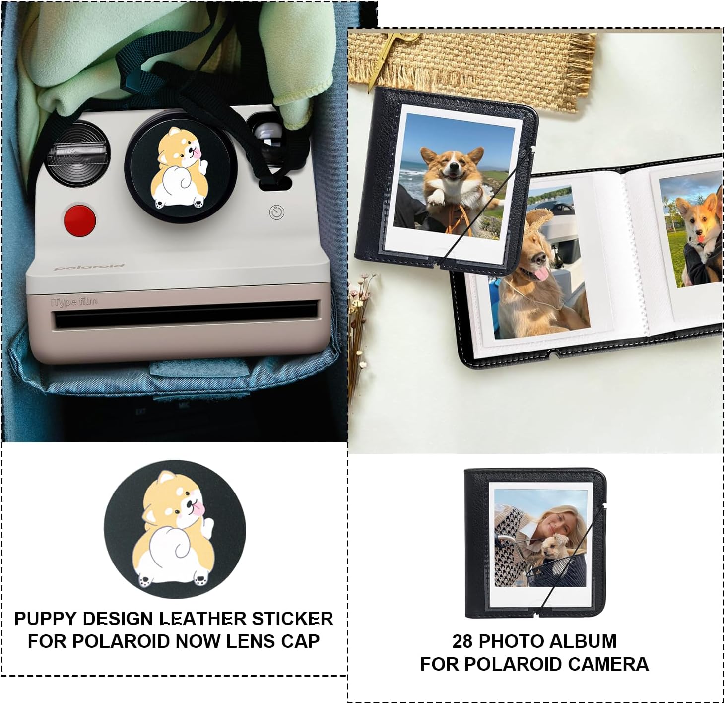 WOGOZAN Camera Case Kit for Polaroid Now 2nd/3rd, Now+ Gen 2/3rd, I-Type, OneStep, Filp, Instant Camera, Protective Case with Lens Cap and Lens Cover Sticker, 28 Photo Album (Black) (No Camera)