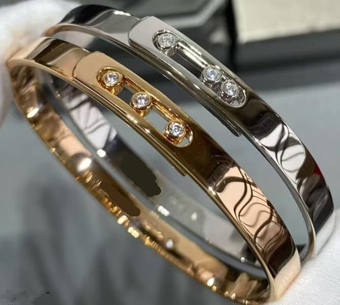 This versatile bracelet can be worn alone or layered with other bracelets/bangles/beads to create stylish layered looks and add a touch of elegance. These bracelets offer endless versatility, easily transitioning from day to night.The bracelet has a smooth, glossy surface that reflects light, giving it a sparkling and sophisticated look. Three rhinestones are typically set on a sliding component, while cubic zirconia can slide freely across the bracelet, moving dynamically with the wrist and adding to the jewelry's playfulness and uniqueness.