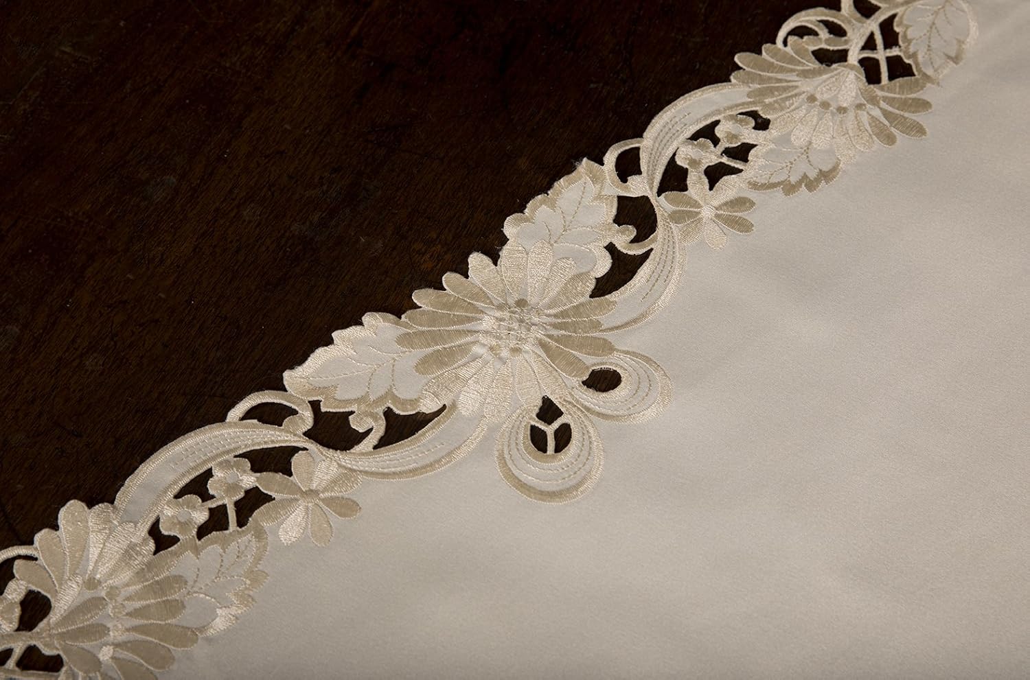 These fine linens feature classic styling with a summer Daisy kick! scalloped edges and scrolling cutwork and floral embroidery combine to create and elegantly festive linens collection that perfectly accents any occasion