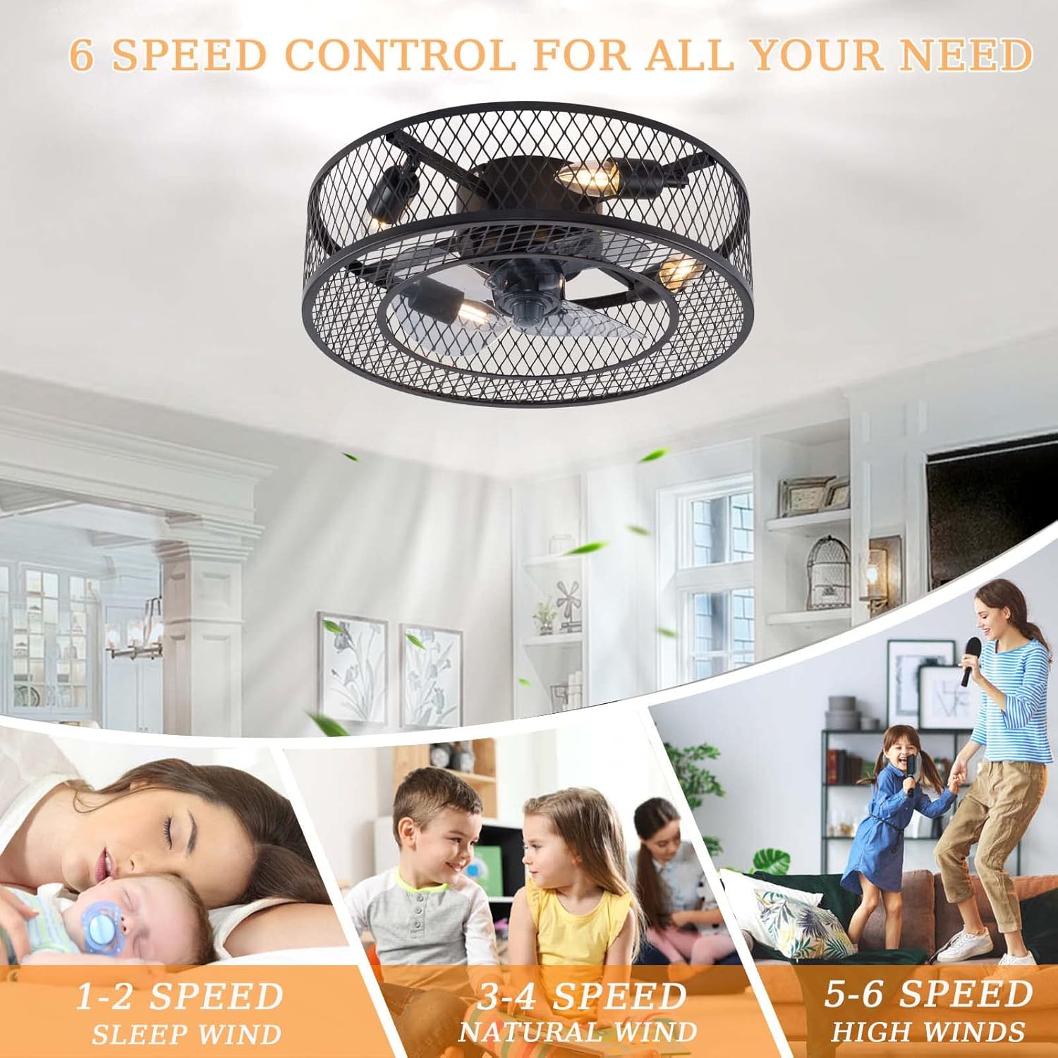 YUEGOO Ceiling Fans with Lamps,Ceiling Fans with Lights and Remote Control 6- Speed Ceiling Fan with Lighting Reversible Dc Motor Quiet Industrial Retro for Living Room Kitchen/a