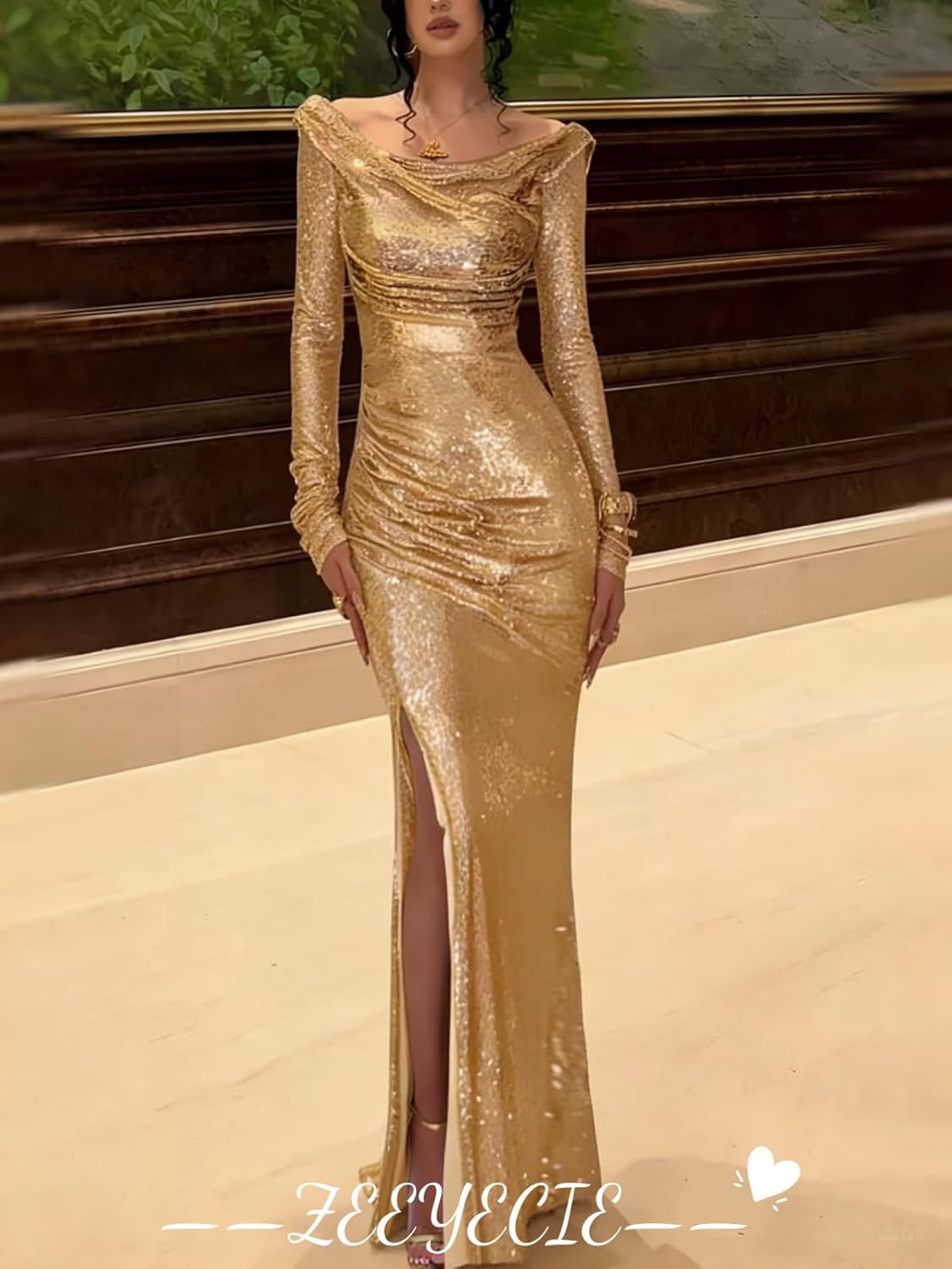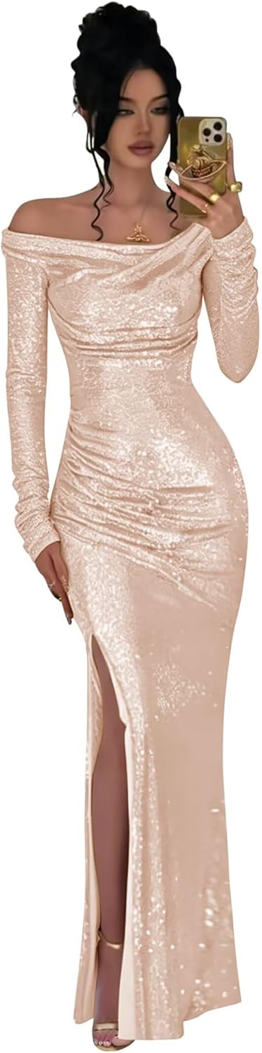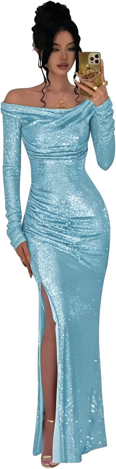 Item Description: This Off Shoulder Long Sleeve Sequin Cowl Neck Prom Dresses for Women Mermaid Sparkly Sexy Elegant Evening Formal Ball Gowns shows the sexy and elegant beauty of women, is every woman deserves to have. Custom Made: Dresses can be made according to your measurements with no more charges,the measurements we need is:1.Bust 2.Waist 3.Hips 4.Hollow(or Shoulder) to Floor 5.The height of your high heel shoes. Occasion:Prom Dresses,Party Dress,Formal, Evening,Concert,Black tie,Ball,and so on Waistline:Natural Decoration:sequins Fabric Type:sequins Dresses Length:Floor length long, ball gown with Slit